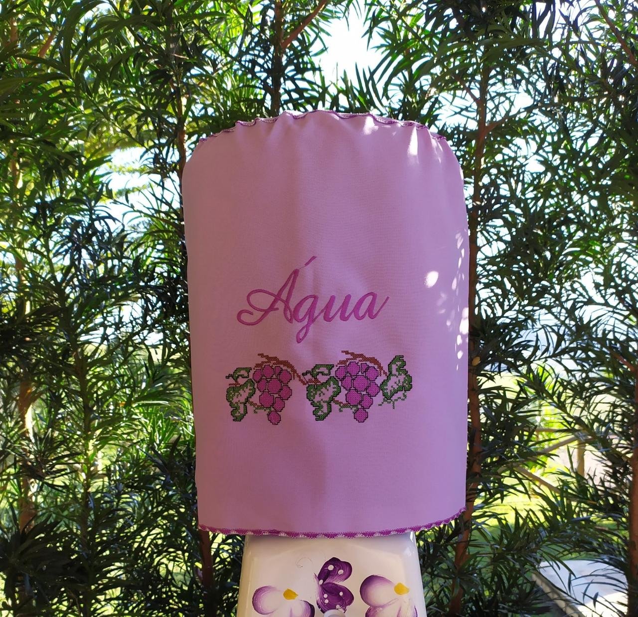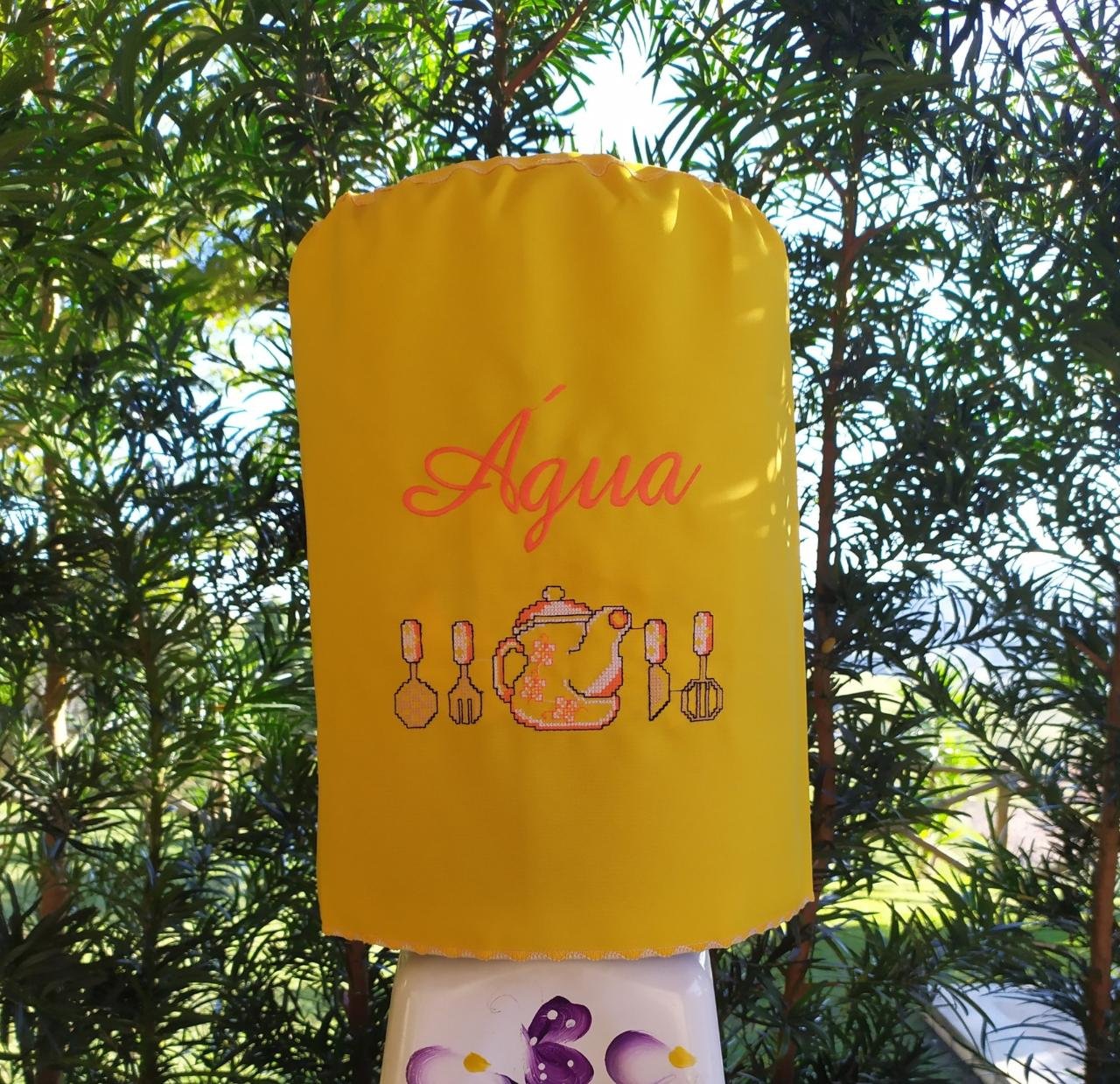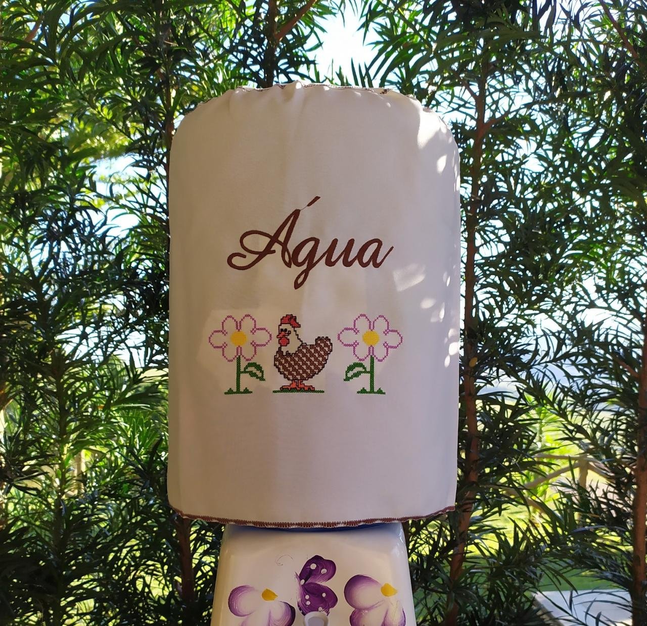 Conheça nossa Capa de Água Ponto Cruz. É um acessório bonito e funcional para o seu galão de água. Feita de tecido macio e decorada com bordados coloridos, ela protege e enfeita o galão, deixando a sua cozinha ou área de serviço mais charmosa. Com diferentes designs e cores, é uma ótima maneira de adicionar um toque artesanal à sua casa.