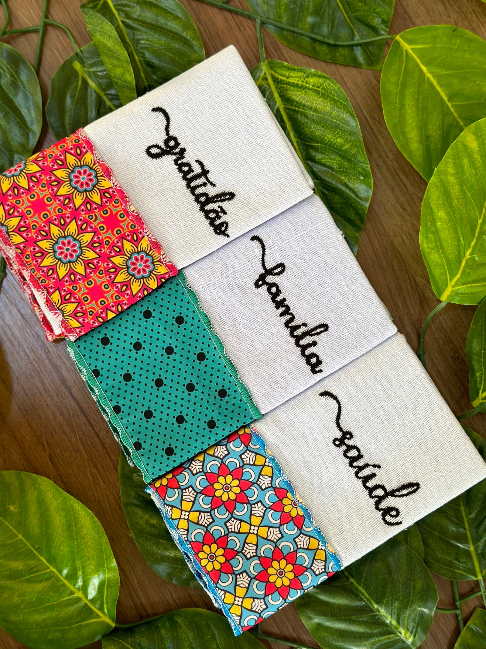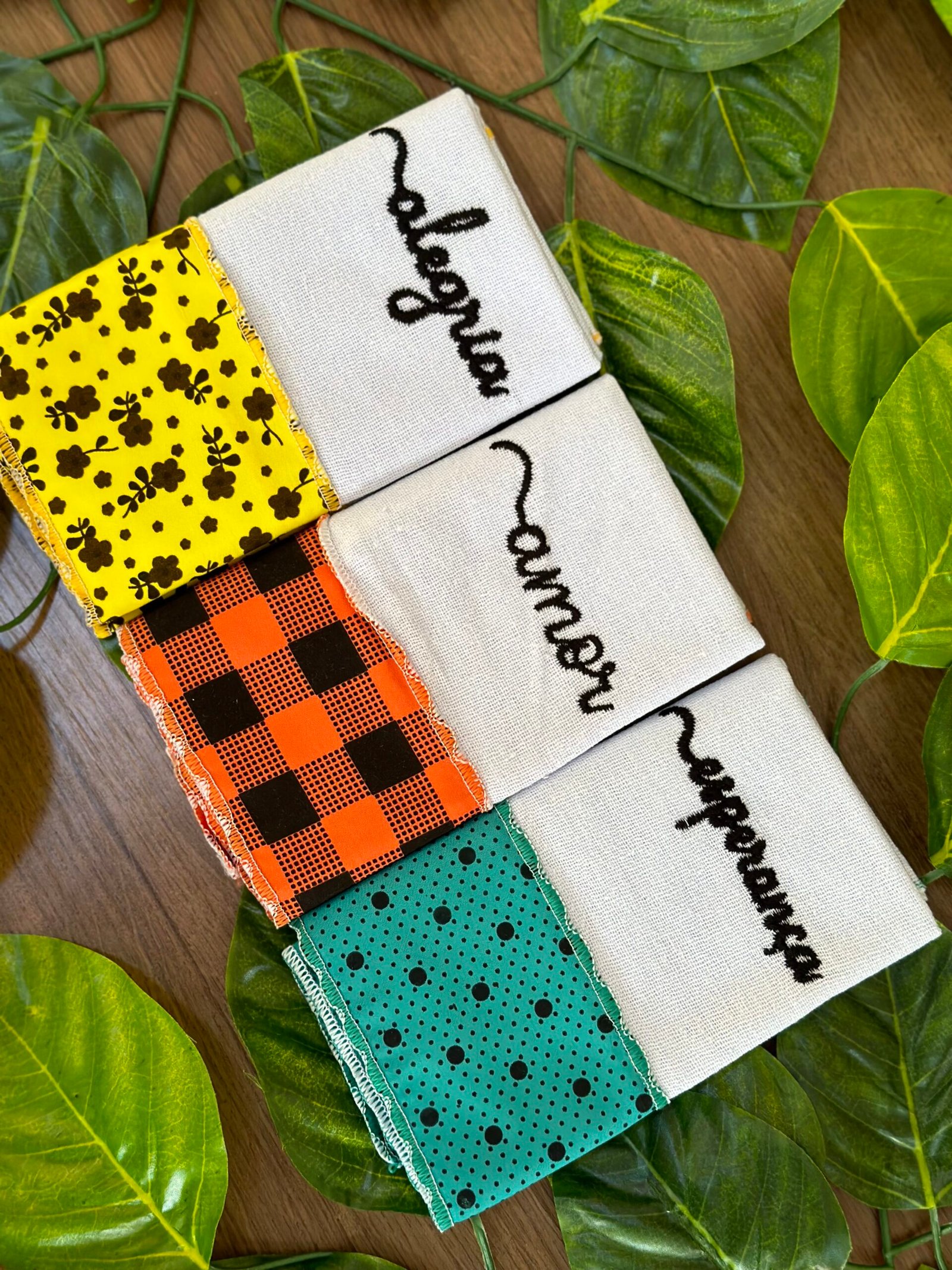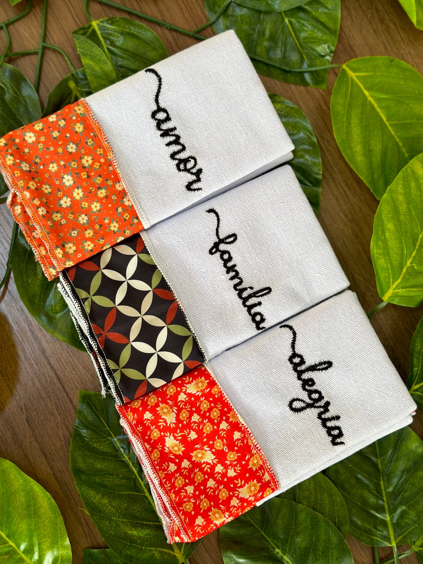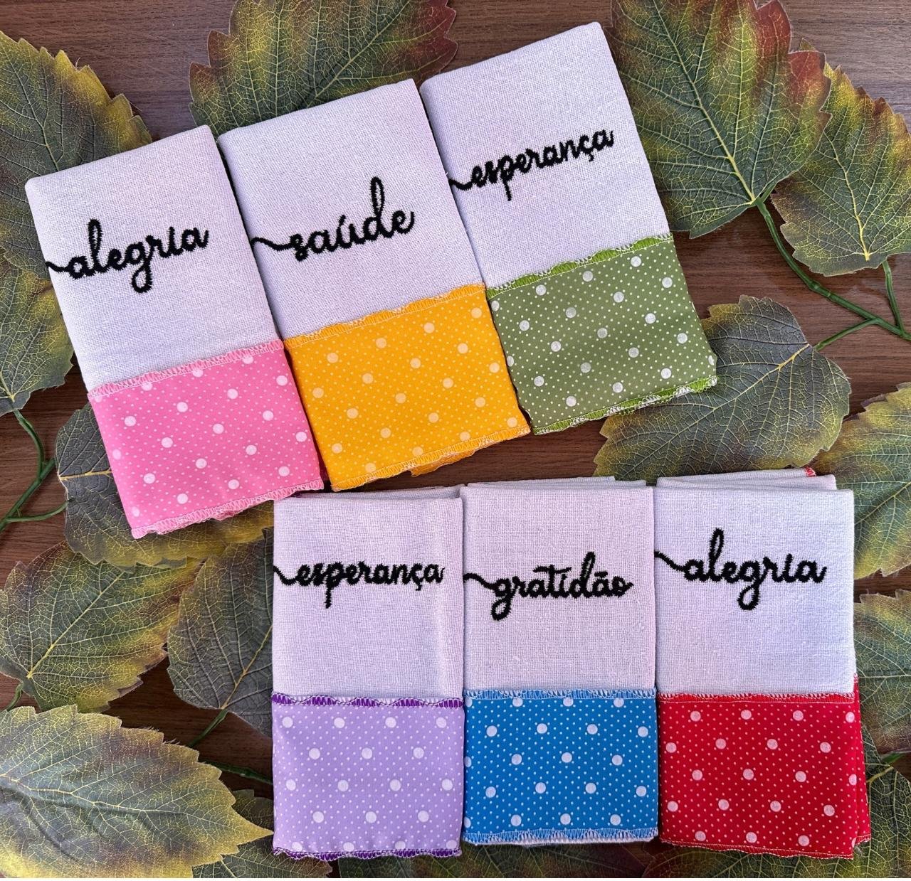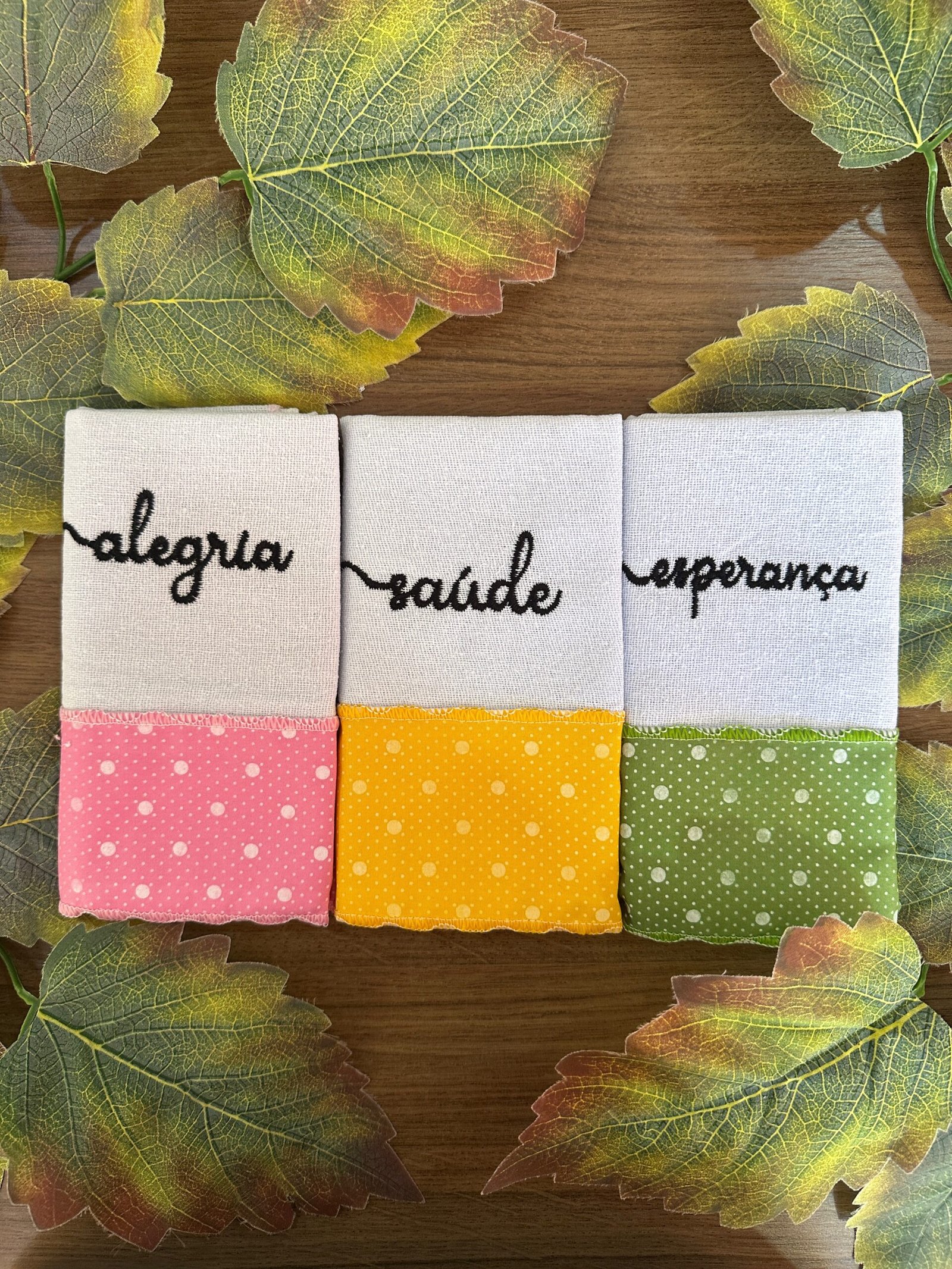 Contém: 03 unidades de Pano de Copa Bordado Palavras variados