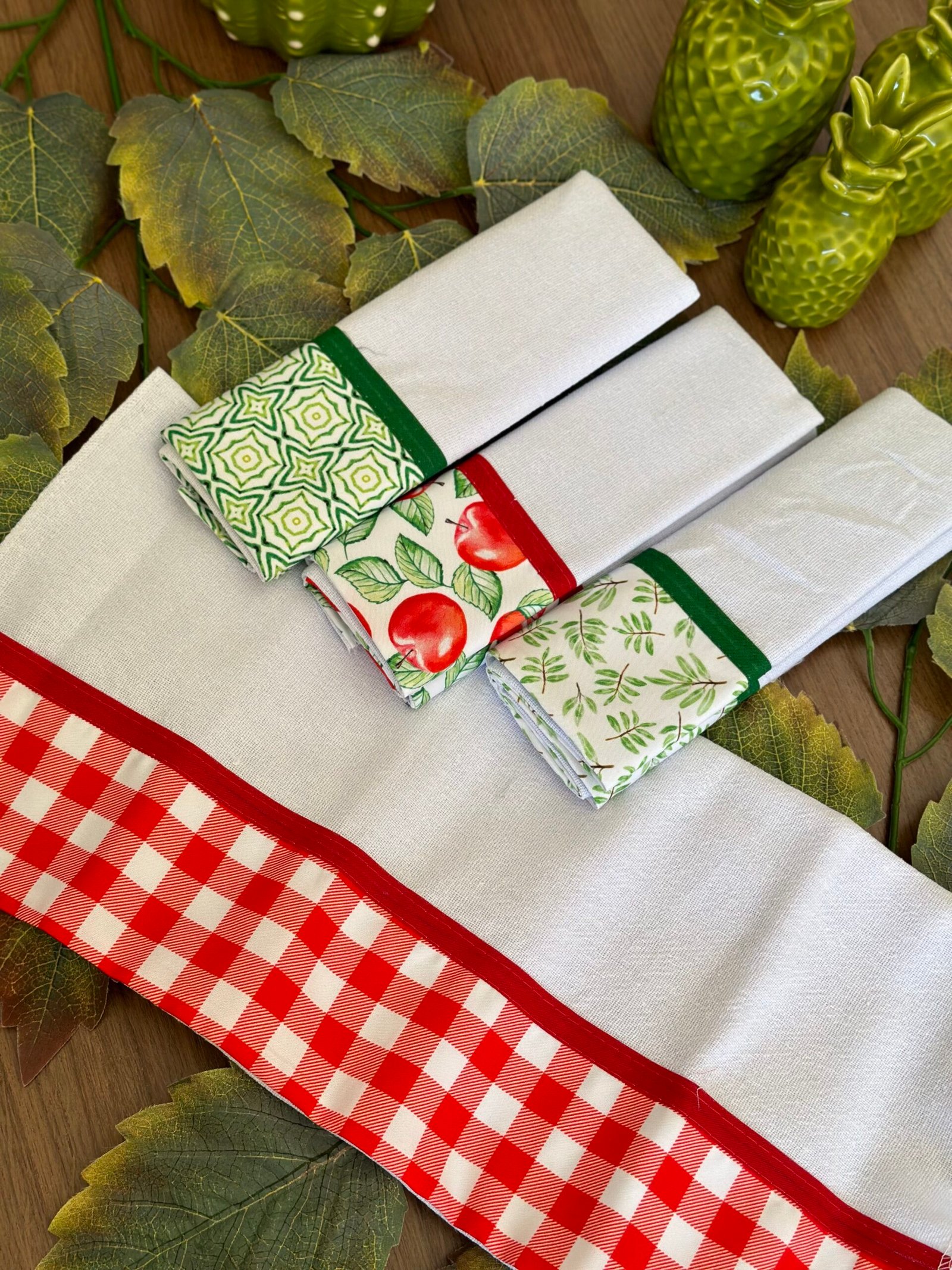 Conheça nosso Kit Pano de Copa Barra Estampada. Cada pano de copa é feito com tecido de alta qualidade e possui barras com estampas que combinam entre si. Ideais para secar louças e manter a cozinha limpa, esses panos também adicionam um toque de cor e estilo ao seu ambiente. Práticos e decorativos, são a escolha ideal para quem valoriza funcionalidade e beleza.