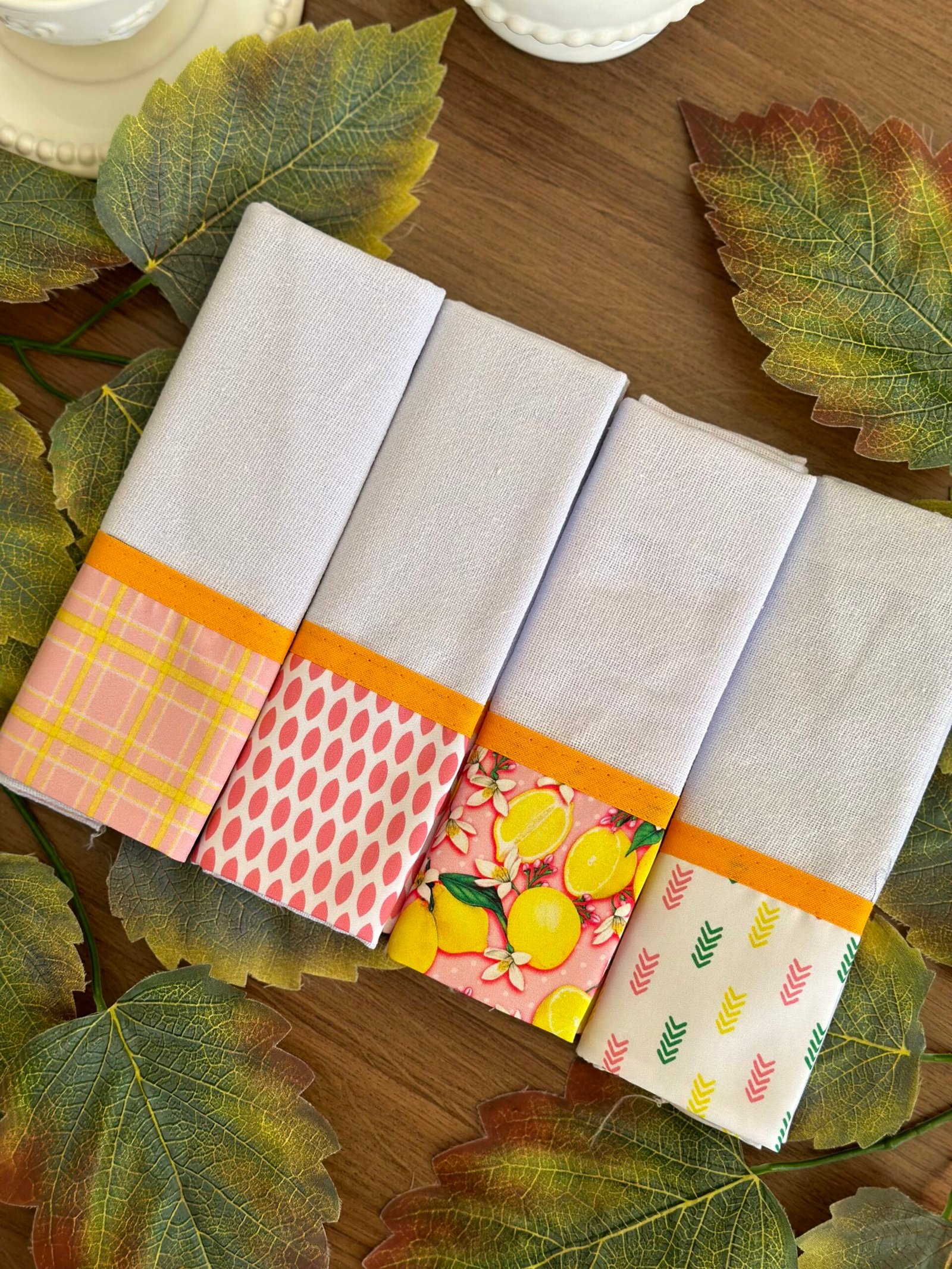 Contém: 04 unidades de Pano de Copa Barra Estampada variados