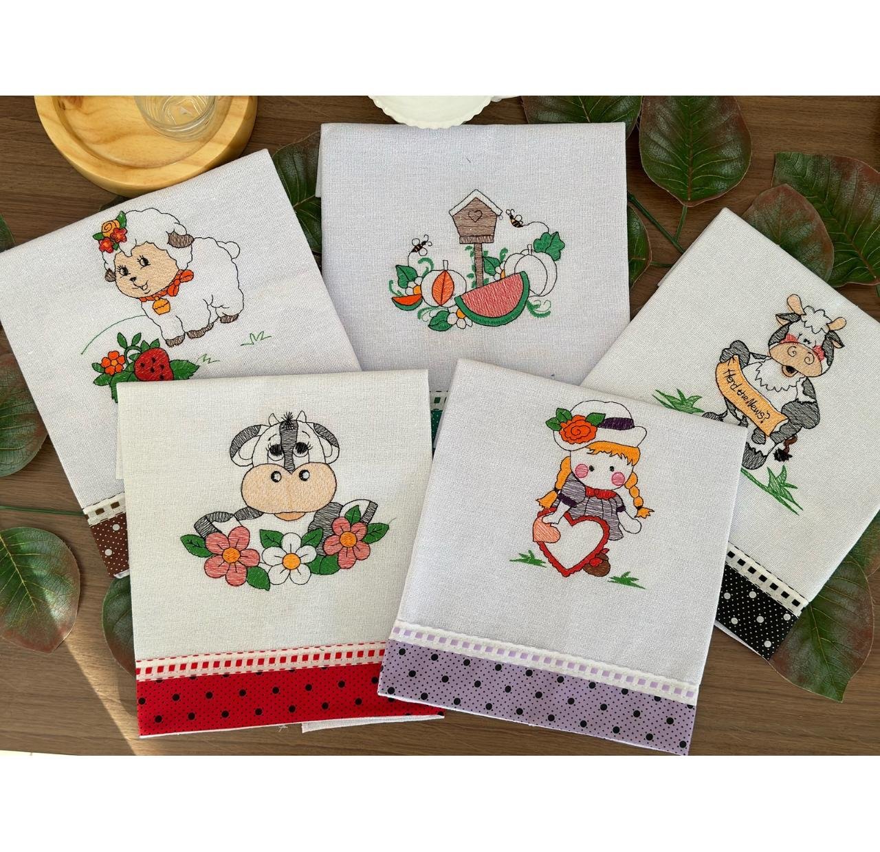 Contém: 10 unidades de Pano de Copa Bordado variados