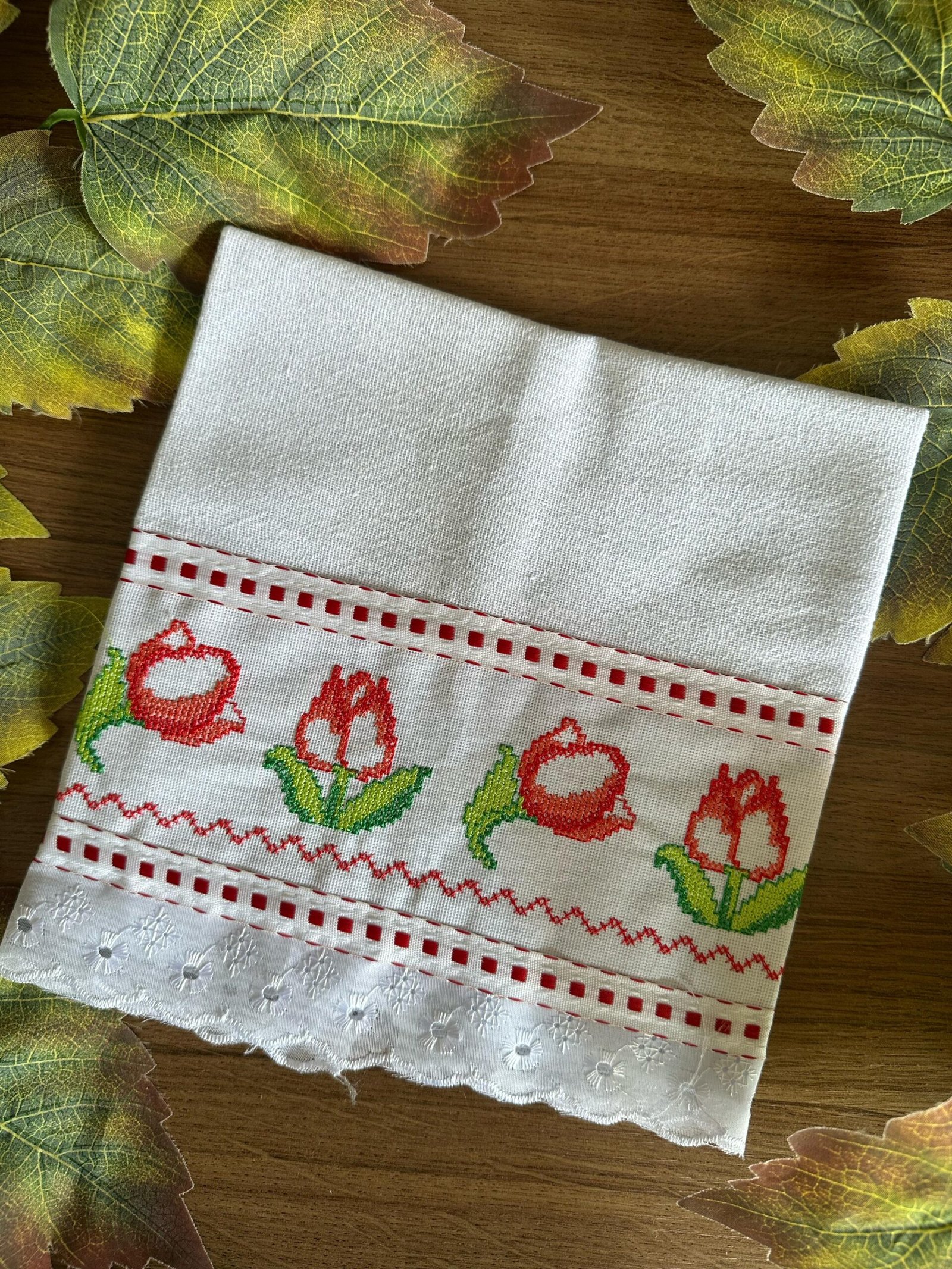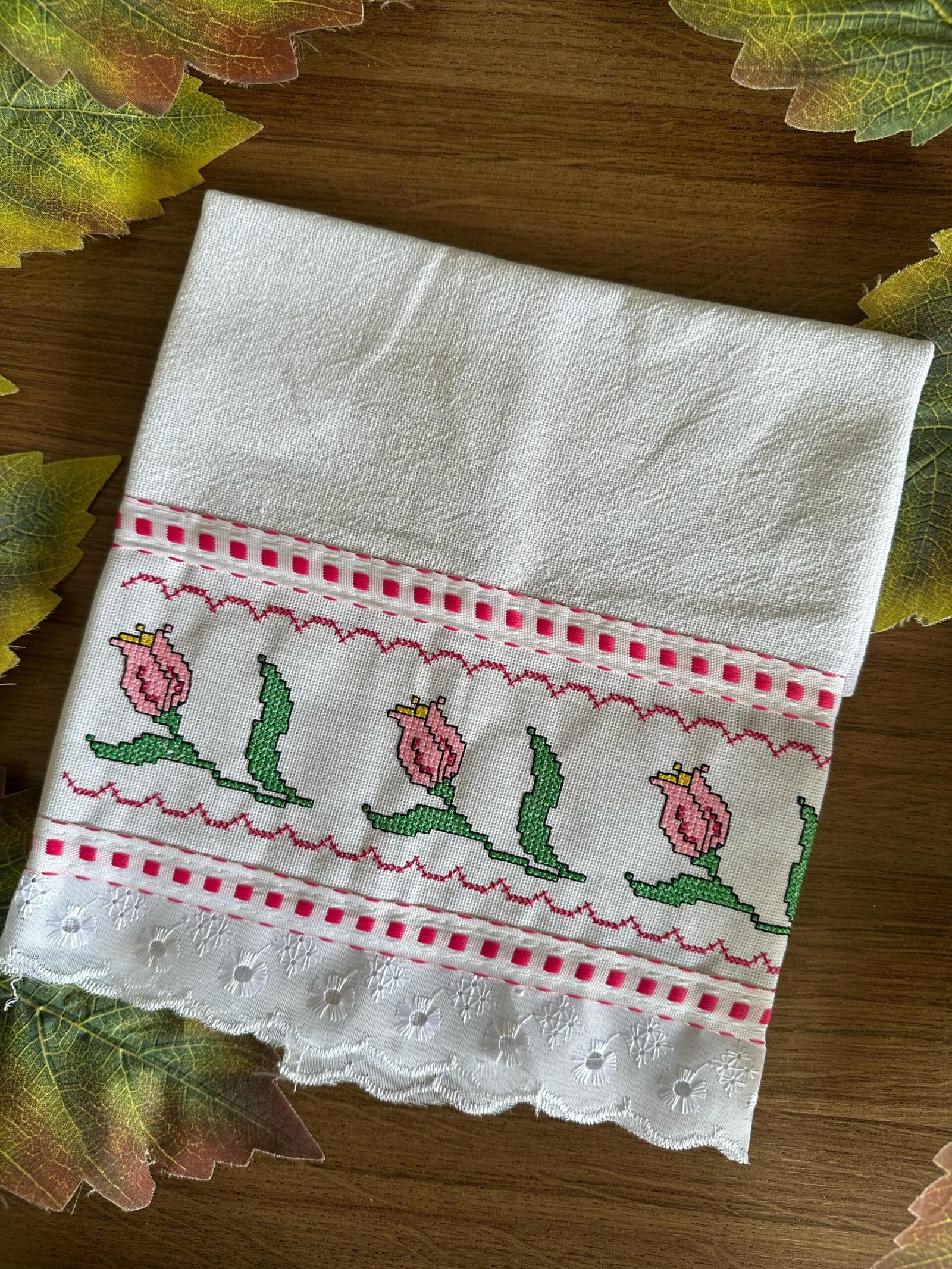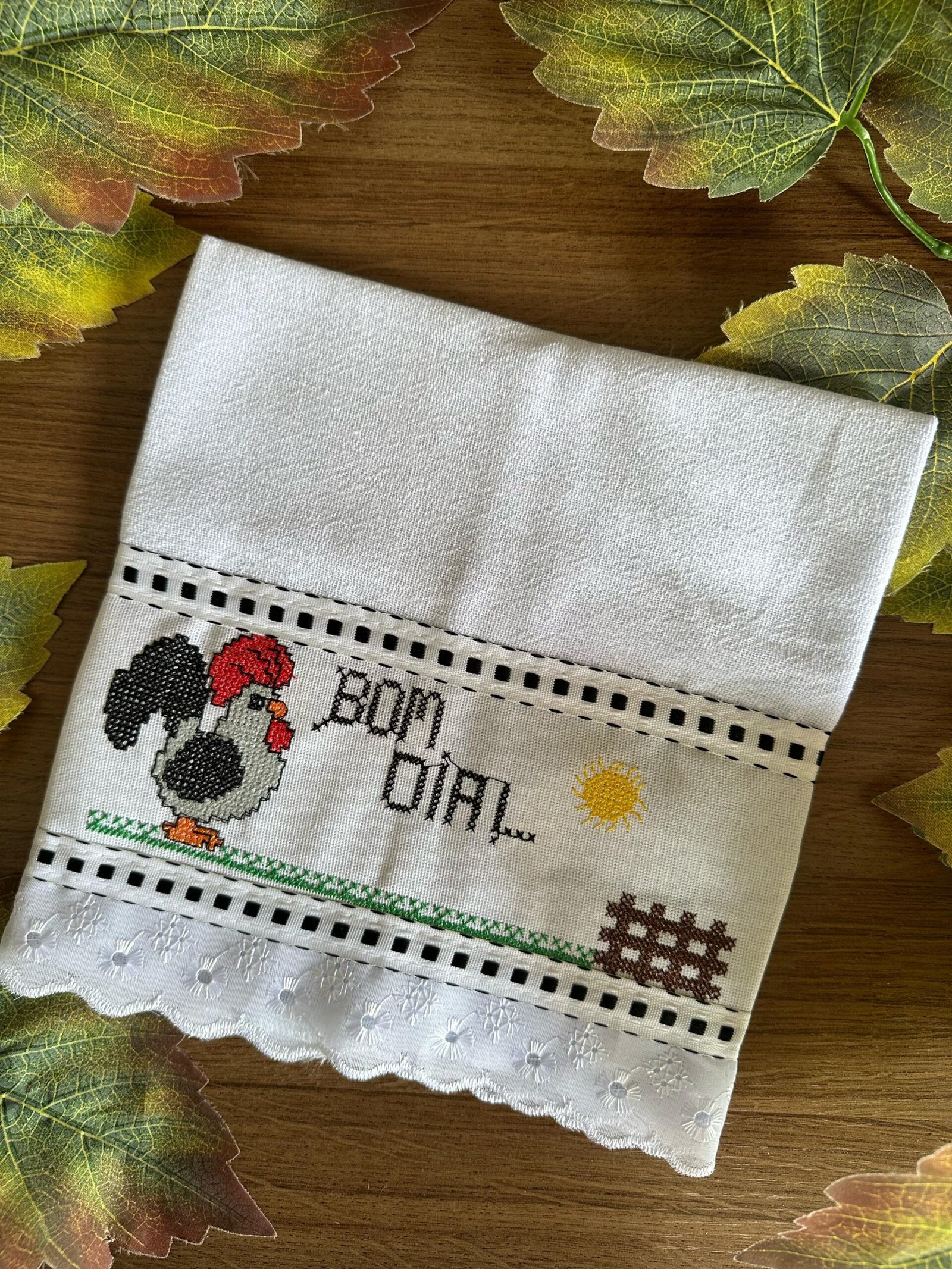 Conheça nosso Pano de Copa Ponto Cruz Bordado Inglês. Feitos com tecido de alta qualidade e decorados com bordados em ponto cruz, eles são ideais para secar louças e manter a cozinha limpa. Além de práticos, esses panos trazem um toque artesanal e delicado que enfeita o ambiente. Com diversos designs e cores, são a escolha ideal para quem aprecia detalhes elegantes no dia a dia.