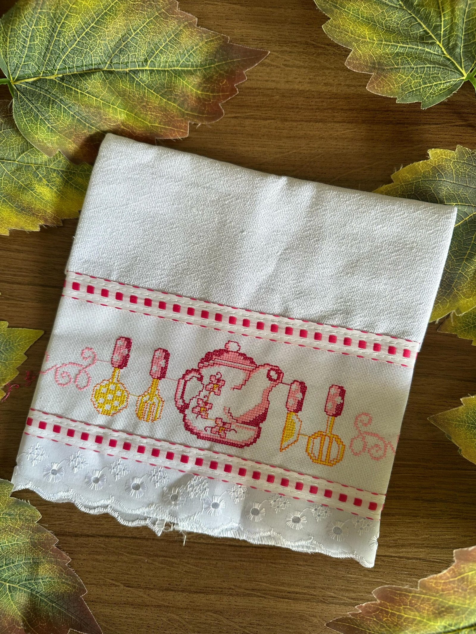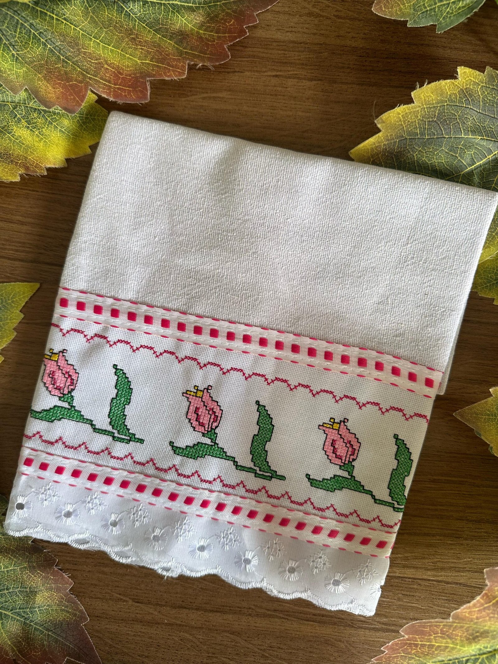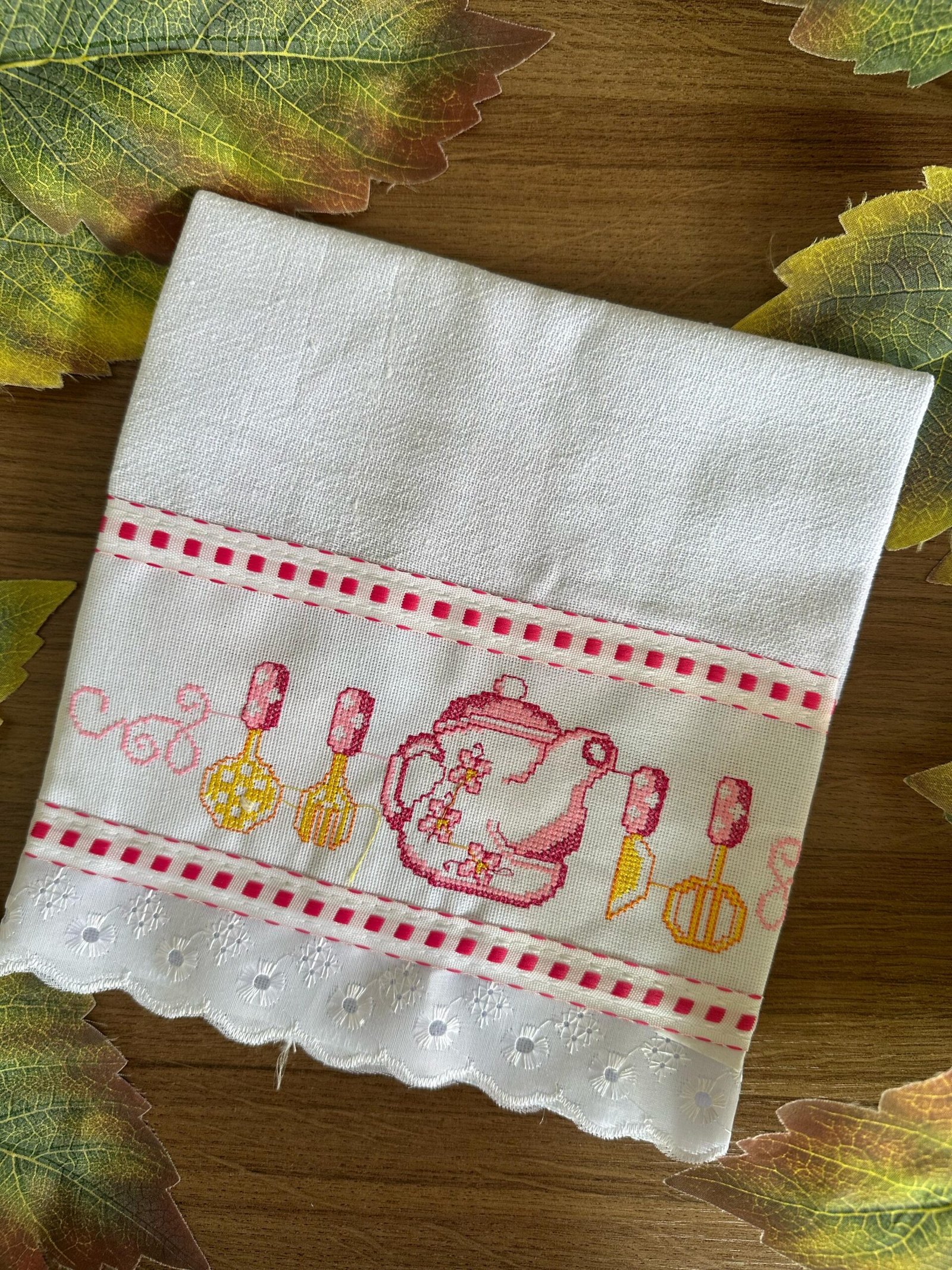 Conheça nosso Pano de Copa Ponto Cruz Bordado Inglês. Feitos com tecido de alta qualidade e decorados com bordados em ponto cruz, eles são ideais para secar louças e manter a cozinha limpa. Além de práticos, esses panos trazem um toque artesanal e delicado que enfeita o ambiente. Com diversos designs e cores, são a escolha ideal para quem aprecia detalhes elegantes no dia a dia.